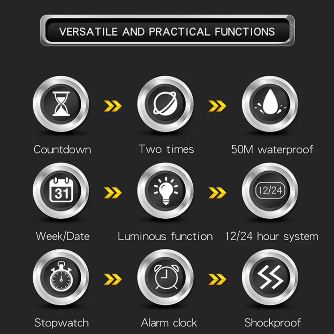Este reloj multifunción reúne todo lo que necesitas: cronómetro, alarma, calendario, luz y resistencia al agua