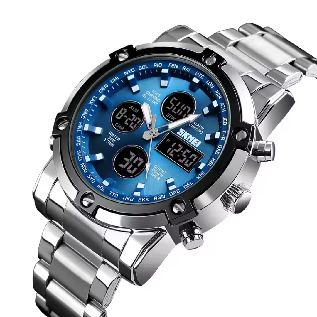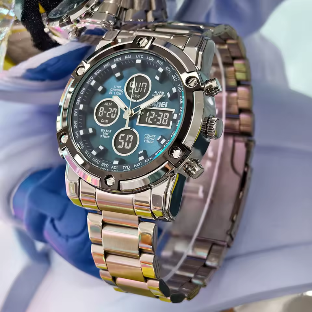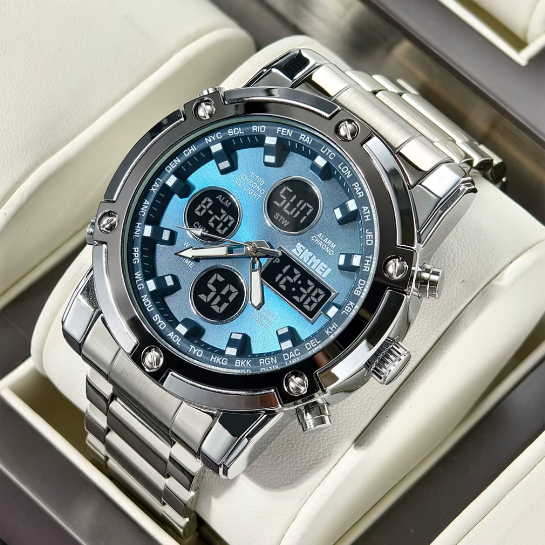 “Elegancia que brilla incluso en la oscuridad. Este reloj con Luz LED combina diseño moderno y funcionalidad para hombres que siempre quieren más.”