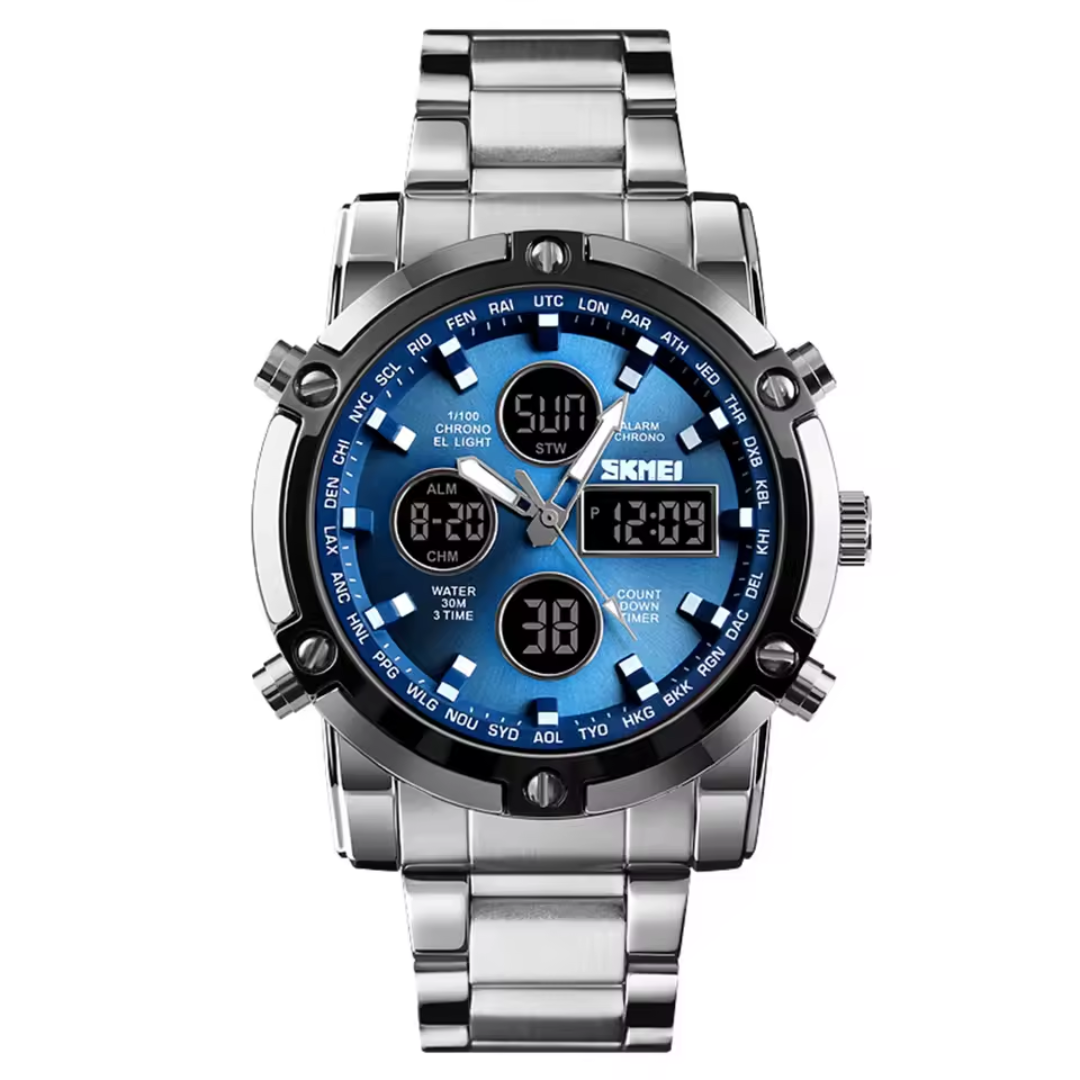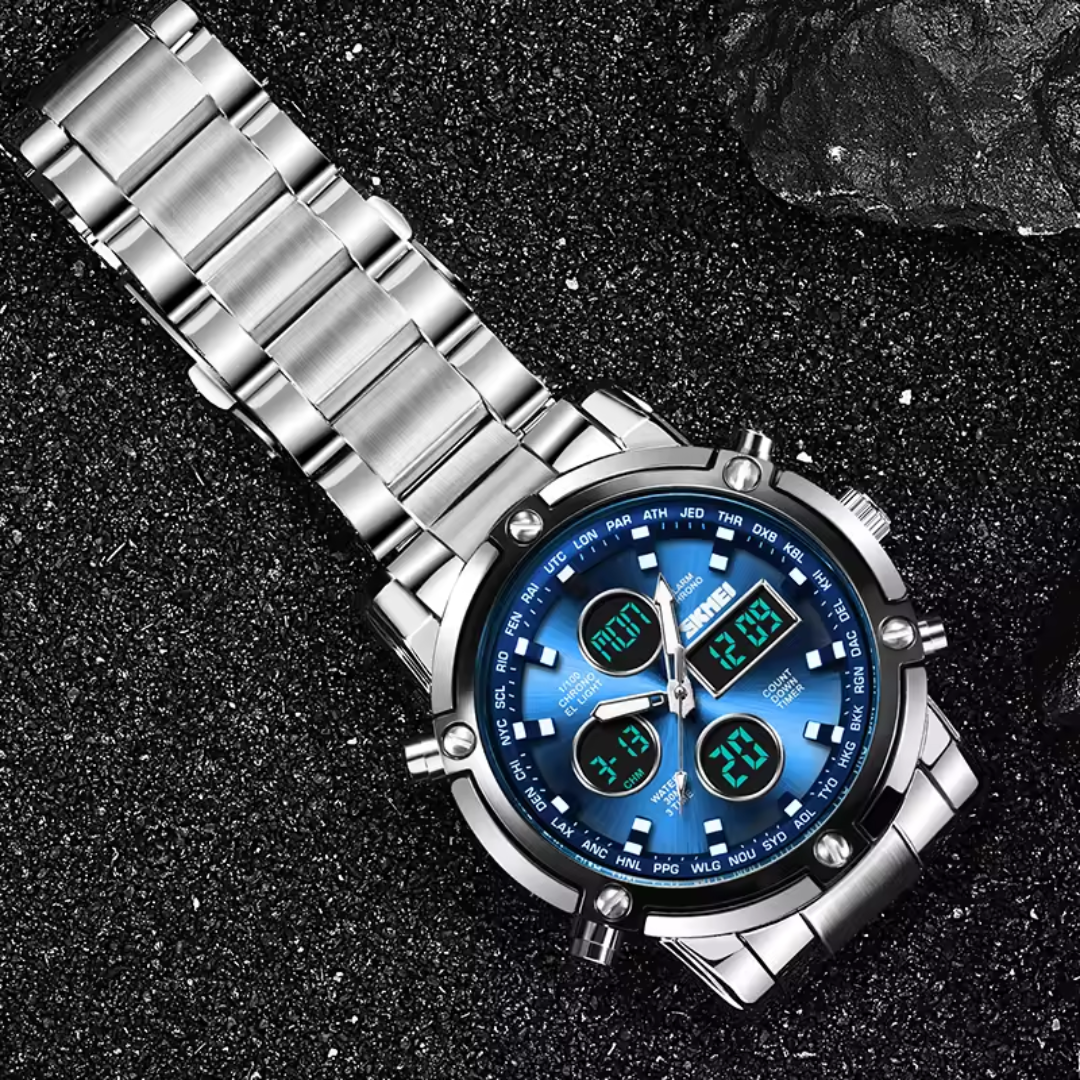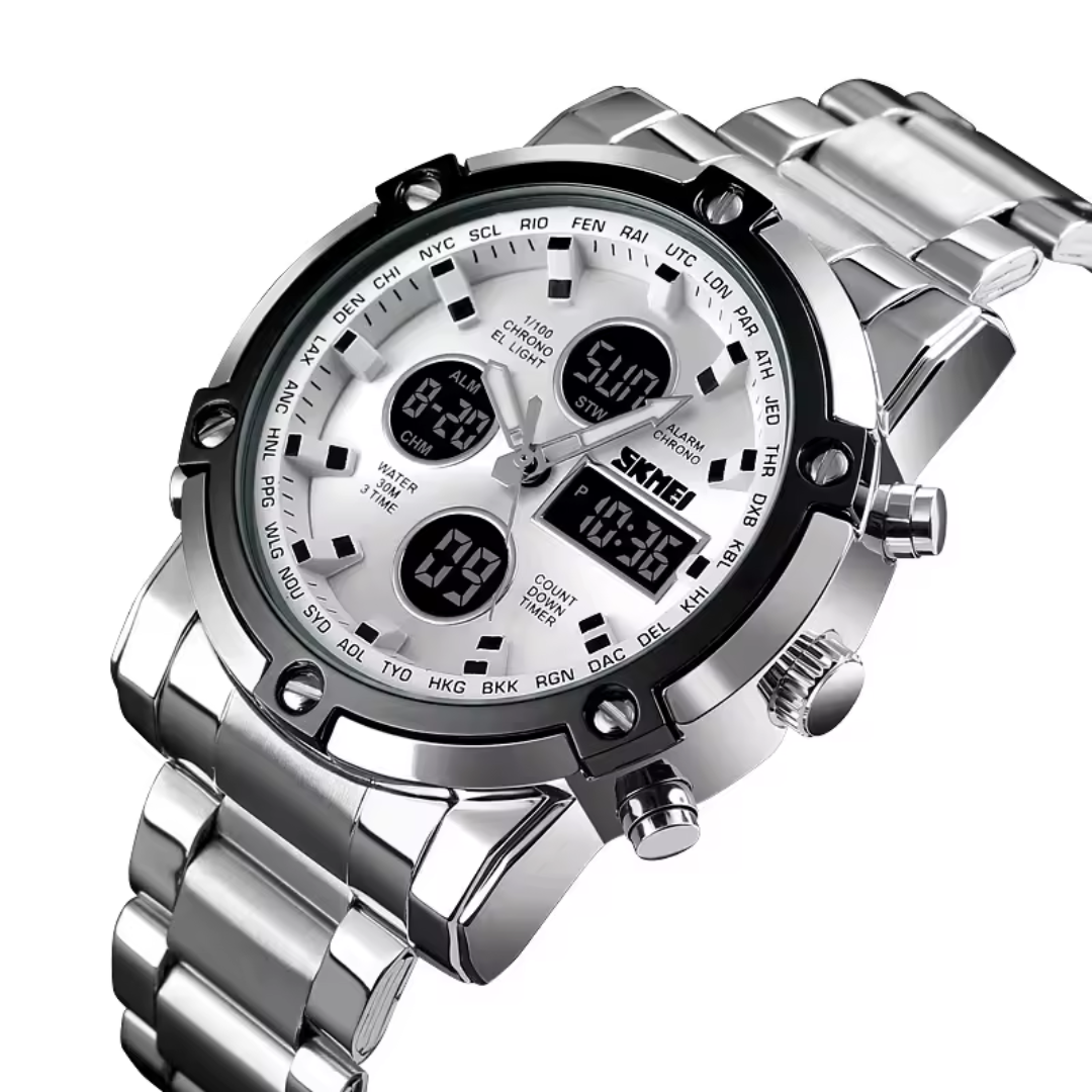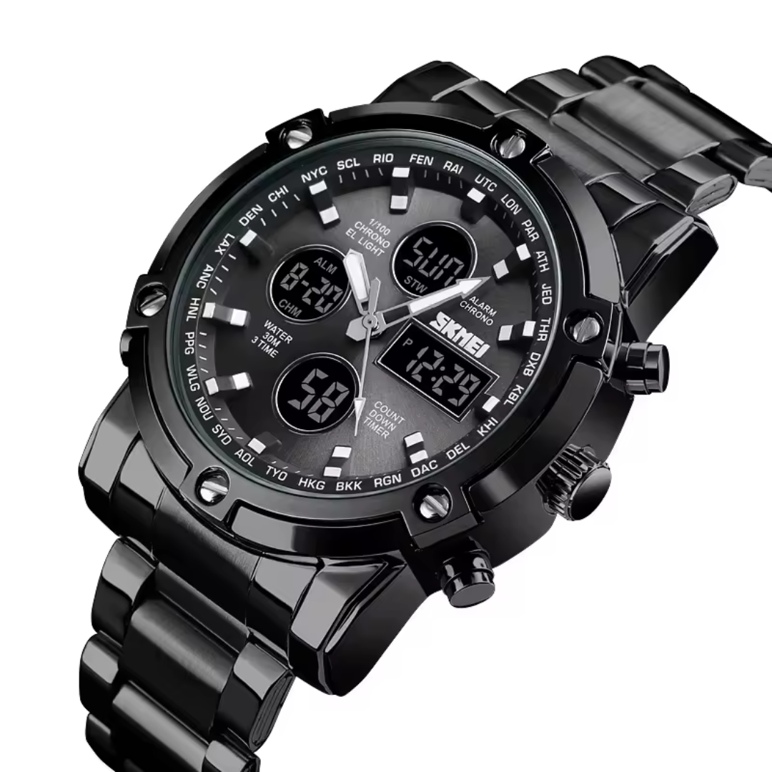 “Elegancia que brilla incluso en la oscuridad. Este reloj con Luz LED combina diseño moderno y funcionalidad para hombres que siempre quieren más.”